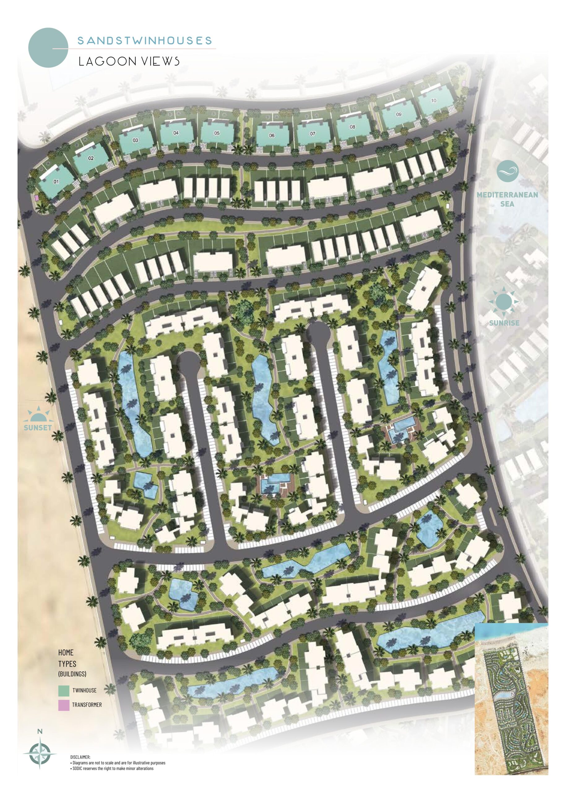 June Sodic North Coast contains a variety of residential and summer units, including villas, first row on the sea, twin houses, townhouses, duplexes, and luxury chalets. These units also differ in space and price.